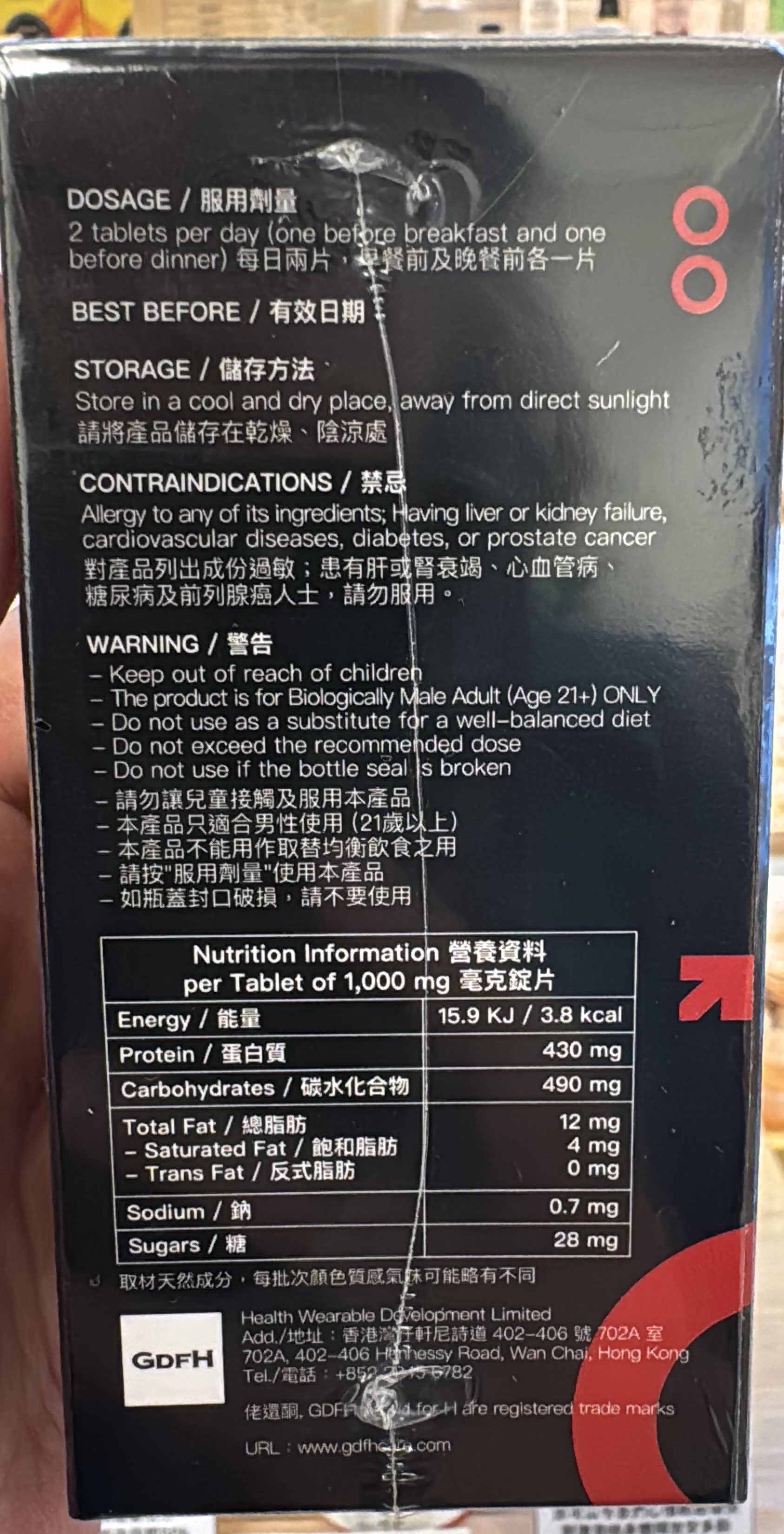 對產品列出成份過敏;患有肝或腎衰竭、心血管病、糖尿病及前列腺癌人士,請勿服用